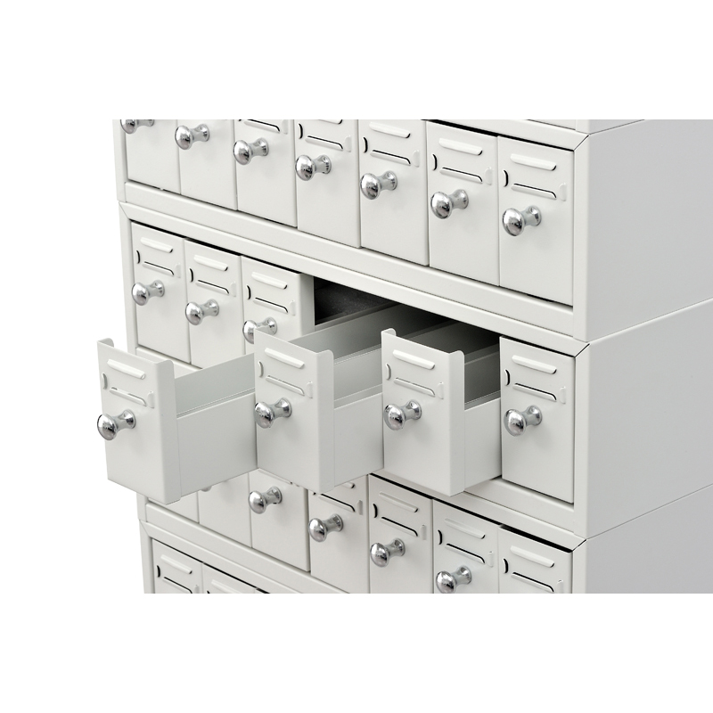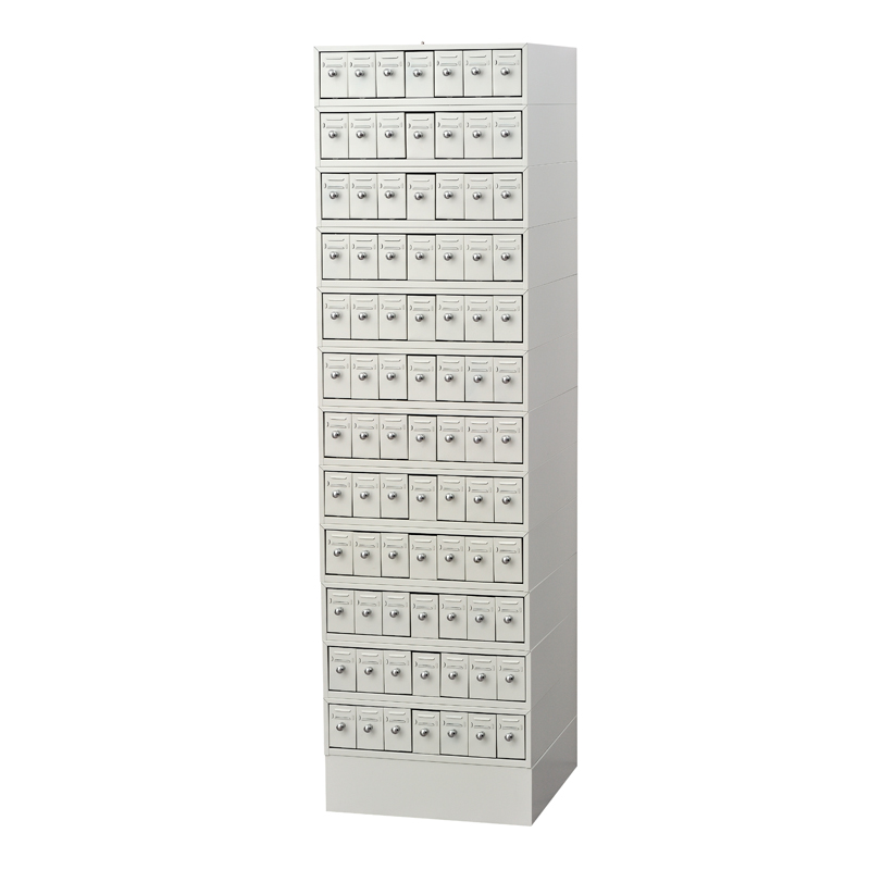 底座采用寶鋼SPCC1.2冷軋鋼板,箱體0.8冷軋鋼板,抽屜0.8冷軋鋼板,八十四個(gè)抽(十二節(jié),每節(jié)七抽,加一底座,每只抽屜可存放標(biāo)準(zhǔn)玻璃切片900張,每組存放切片75600張以上),玻片專用抽進(jìn)口ABS滑道抽屜內(nèi)置暗鎖,防滑功能.拉手采用ABS鍍鉻,抽屜內(nèi)分隔六個(gè)空間,便于存檔。柜體表面處理脫脂除油、表調(diào)、鋅系磷化、鈍化、粉末噴涂。