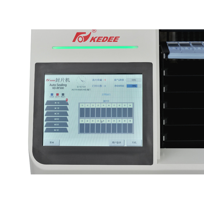 ◇ 封片機采用10.4工控彩色觸摸控制屏。WINDOWS操作系統(tǒng),智能人機交互系統(tǒng),操作便捷易